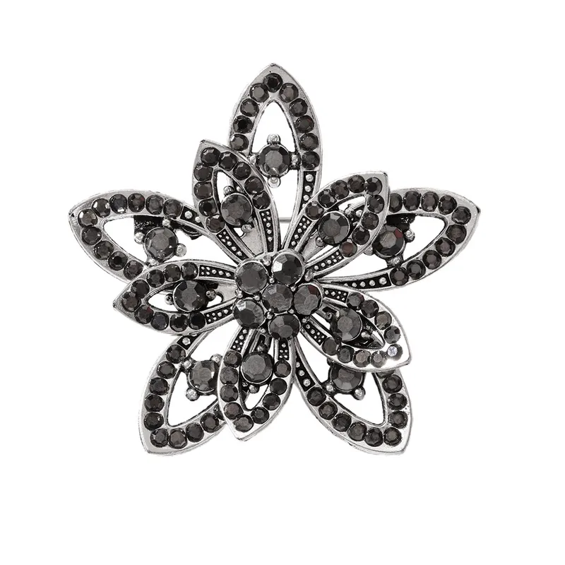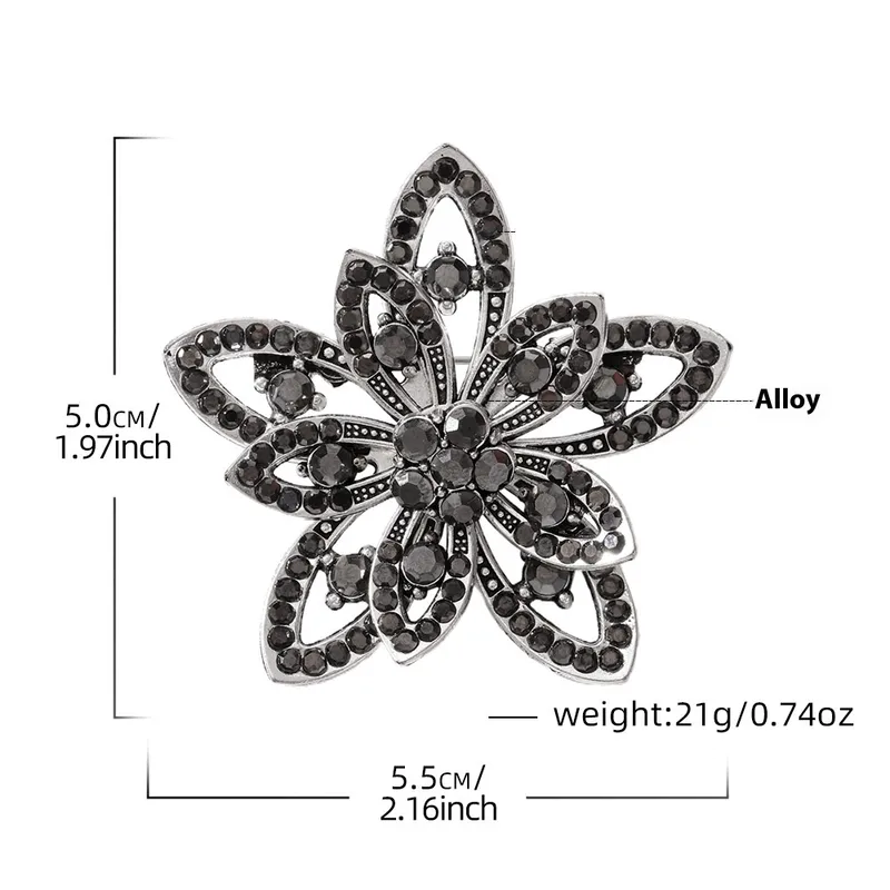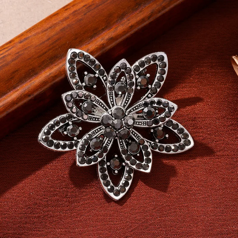 El Broche Flor Nocturna Vintage combina el brillo de cristales negros con un diseño floral inspirado en la joyería clásica. Ideal para darle un toque sofisticado a blazers, bufandas o vestidos elegantes. 💫