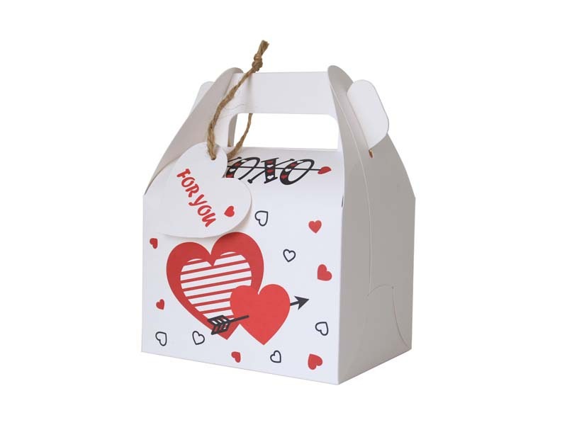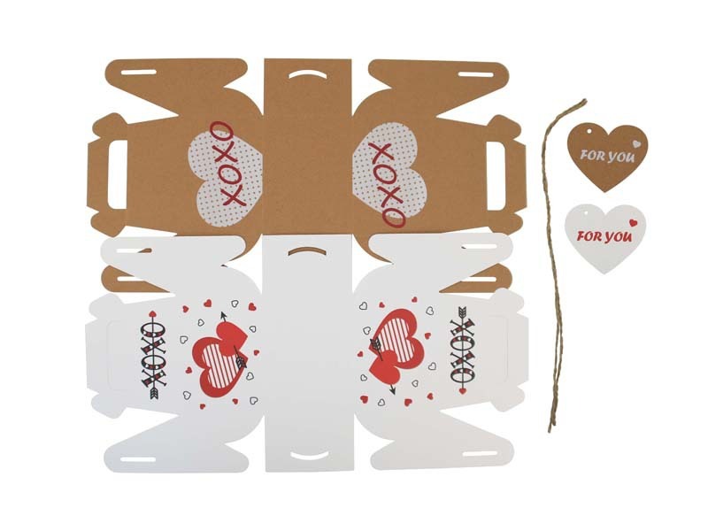 Caja de cartón con diseño romántico y asa resistente, ideal para chocolates, dulces, accesorios o pequeños obsequios. Incluye etiqueta decorativa para personalizar con mensajes y convertir cualquier detalle en un regalo inolvidable.