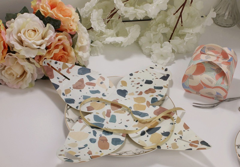 Caja de papel con diseño floral y lazo decorativo, ideal para bodas, fiestas, aniversarios, San Valentín o cualquier ocasión especial. Perfecta para colocar dulces, chocolates o pequeños obsequios. Su acabado colorido y elegante la convierte en un empaque alegre y memorable.